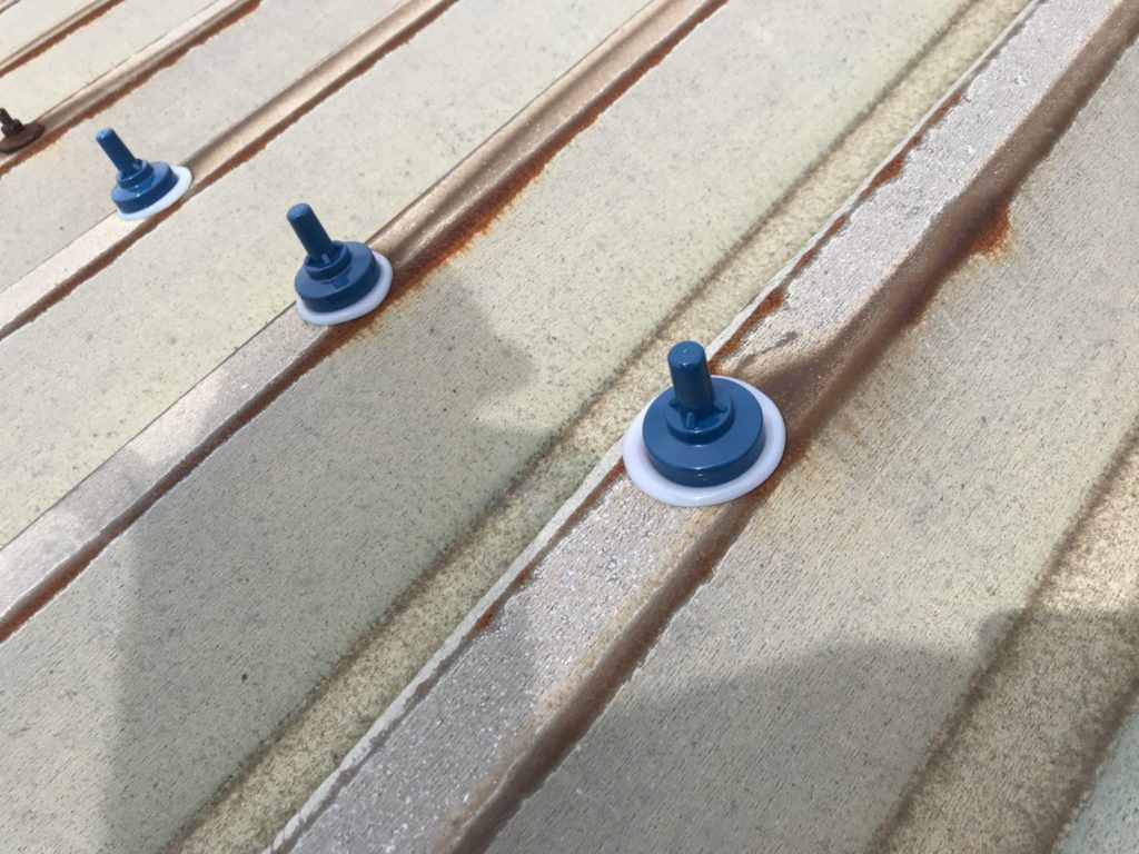 雨漏りの可能性が一番高いボルト部分を、古いコーキングを剥がして耐久性の高いボルトキャップで保護しました。
