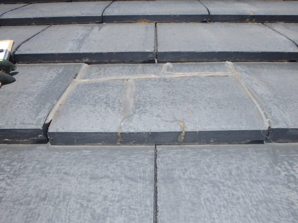 瓦のいいところは、1枚単位で交換ができること。今回も、破損している瓦だけを交換しました。