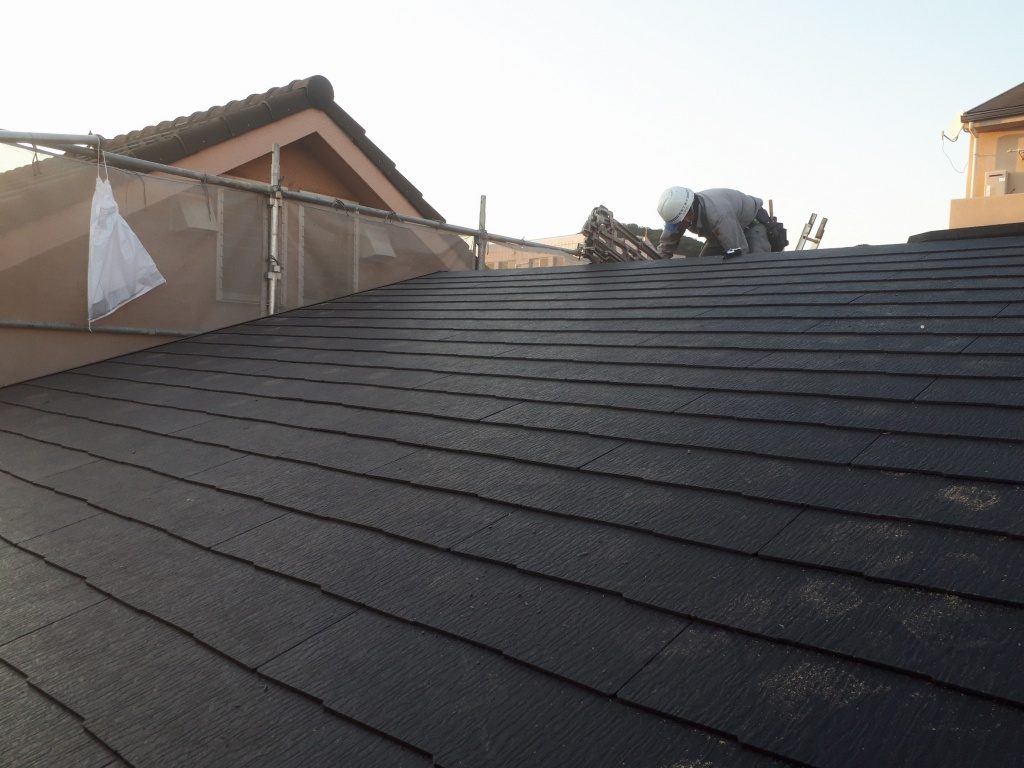スレート屋根は一般的に10年から15年に一回、劣化した塗膜に屋根塗装をして防水性を高めます。