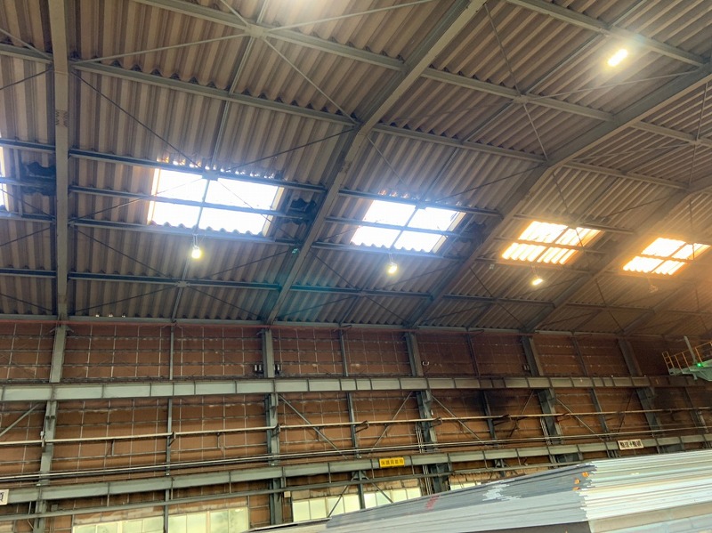 明り取りが経年劣化により変色していましたので、既存の明り取りを撤去して新しい明り取りを設置する工事を行いました。